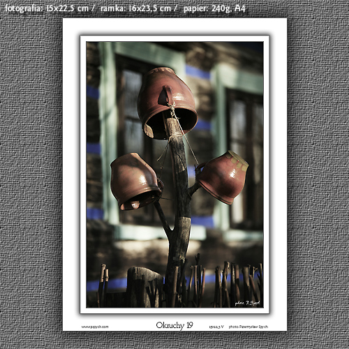 Jeżdżąc po Polsce lubię zatrzymać się na wsi, przy drewnianym płocie i zamienić kilka zdań z właścicielami. Lubię też w małym miasteczku kupić słodką bułkę z jagodami i cieszyć się jej smakiem na ławce pod drzewem. Polska jest kolorowa i piękna. Wystarczy zjechać z głównych tras, zwolnić, wyłączyć radio i rozejrzeć się. Część fotografii wykonana była w muzeach etnograficznych.